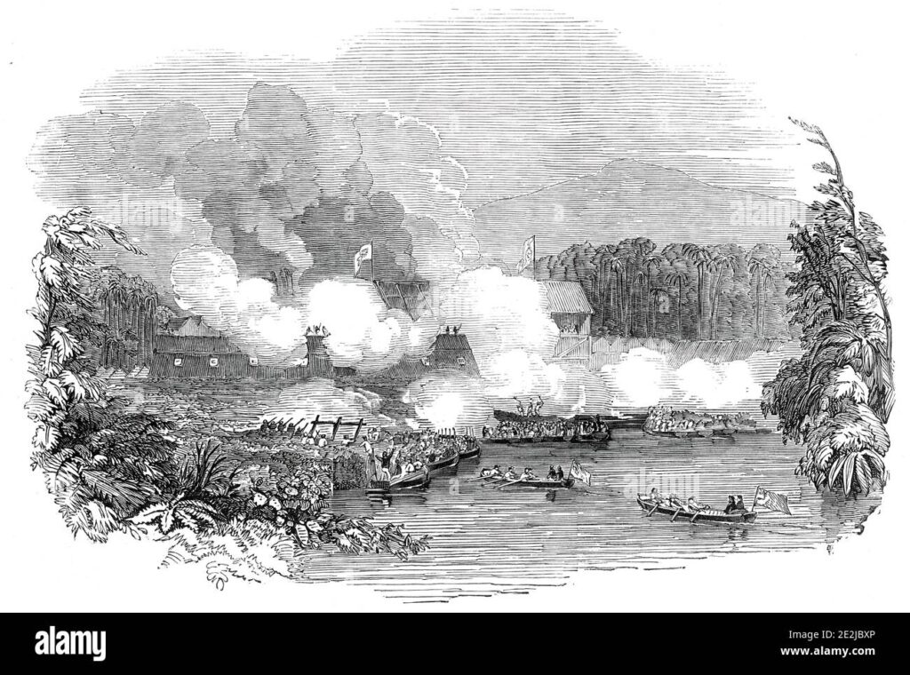 Nakoda Amzah who with a crew of 12 men was on his way to Simarang was attacked off the mouth of Jali by 12 pirate prahus. The attack was sudden but having fought for about an hour. Nakoda Amzah’s men, who sustained a wound from a Lanun musket in the head, resulted in three crew killed. Nakoda Amzah surrendered and was captured by the pirates and their prahu was destroyed. Afterwards, six pirate prahus went along the coast of Borneo while six proceed to Banka.
